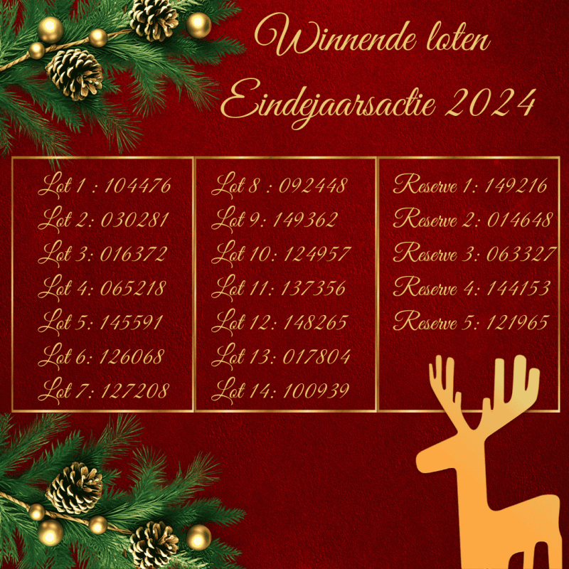Gewonnen nummers eindejaarsactie 2025